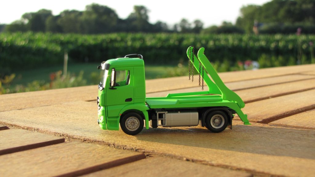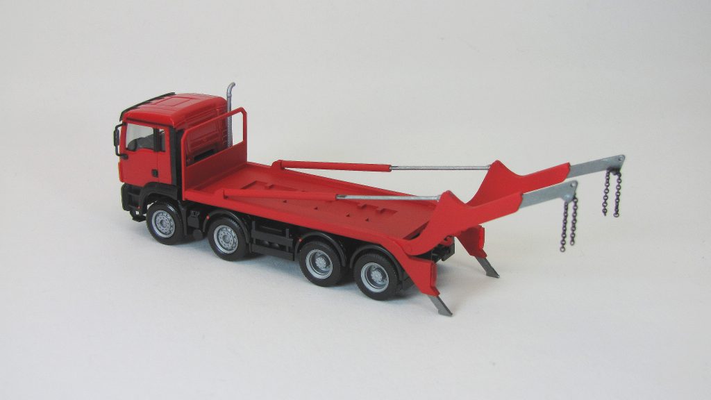 Absetzkipper zählen zu den bekanntesten Containerwechselsystemen. Die Umsetzung von verschiedenen Aufbauvarienten als bewegliche Modellbausätze für den Maßstab 1:87 wurde 2014 realisiert.