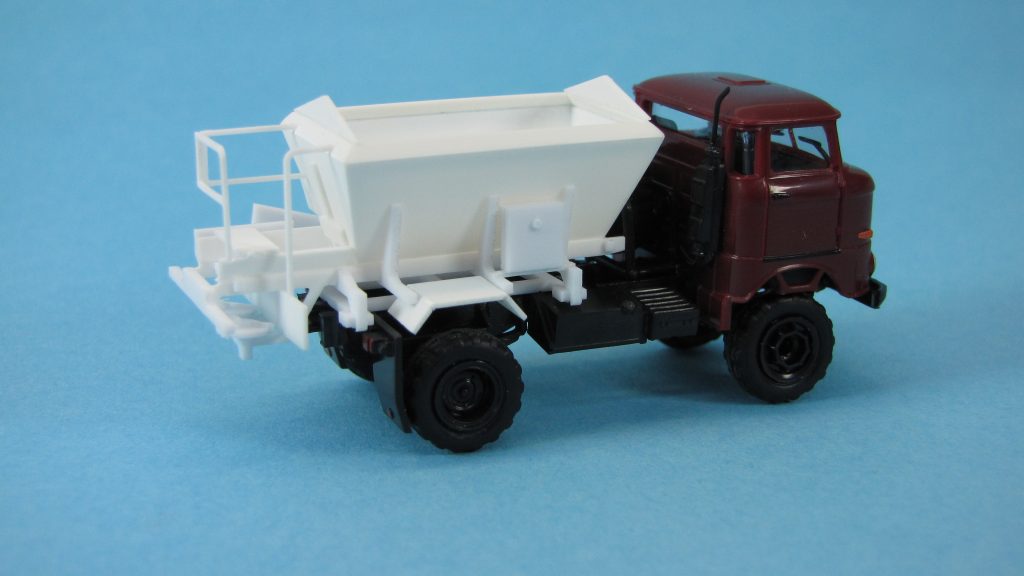 Für die Düngung von landwirtschaftlichen Flächen benötigt man spezielle Anhänger oder Wechselaufbauten für geländegängige Fahrzeuge. In vorliegenden Fall galt es den Wechselaufbau D035B als Kleinserienbausatz im Modell umzusetzen.
