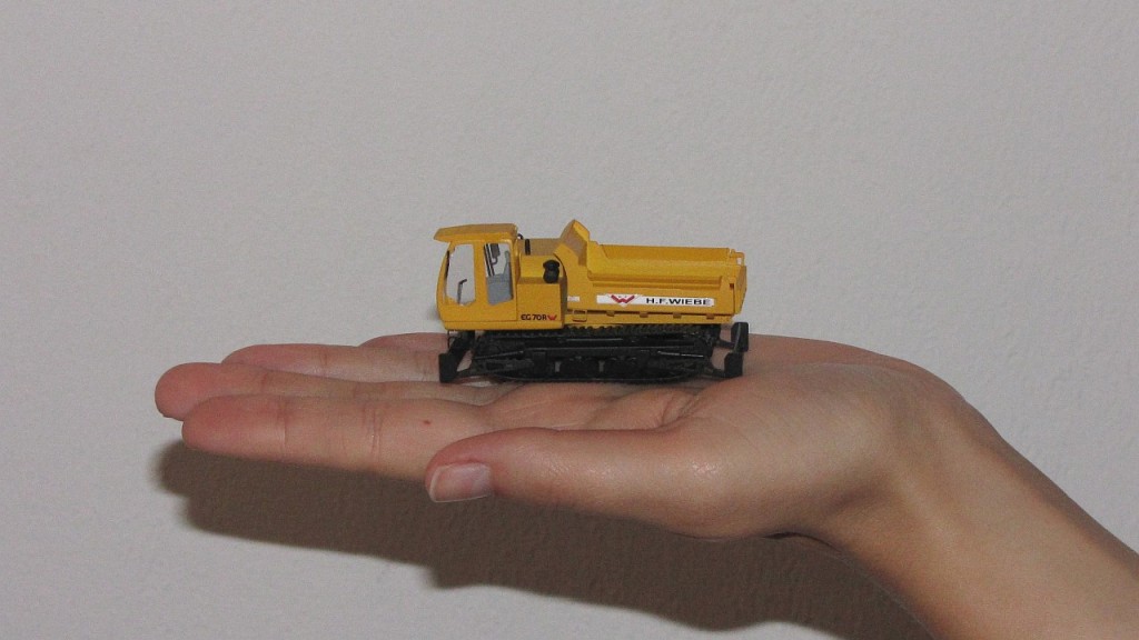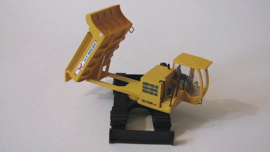 Der vorweigend im Gleisbau eingesetzte Raupendumper Hitachi EG70RW ist durch den um 360 Grad schwenkbare Oberwagen sehr gut für den Einsatz bei beschränkten Platzverhältnissen geeignet. Die Konstruktion und Fertigung des Modells im Maßstab 1:87 erfolgte in 2011.