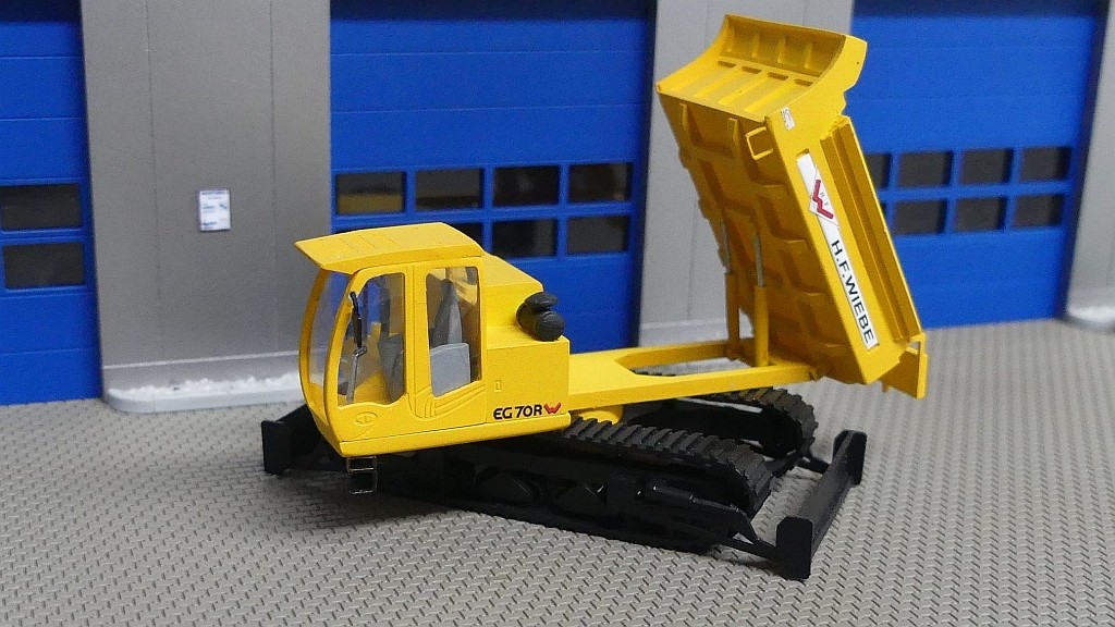 Der vorweigend im Gleisbau eingesetzte Raupendumper Hitachi EG70RW ist durch den um 360 Grad schwenkbare Oberwagen sehr gut für den Einsatz bei beschränkten Platzverhältnissen geeignet. Die Konstruktion und Fertigung des Modells im Maßstab 1:87 erfolgte in 2011.