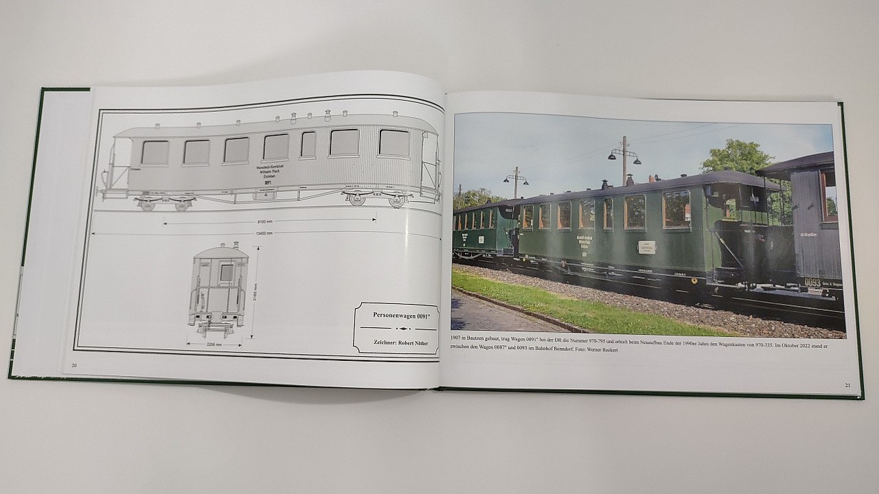 Der im Frühjahr 2023 erschienene erste Band wird durch diesen zweiten Teil ergänzt, in dem die Personen-, Dienst- und Rollwagen vorgestellt werden. Neben den typischen Mansfeld-Personenwagen werden auch die sächsischen Personenwagen beschrieben, von denen einige noch heute bei der Museumsbahn im Einsatz sind.
